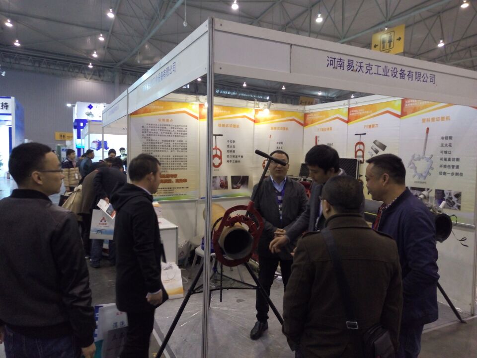 河南易沃克工業(yè)設(shè)備有限公司展位面前人頭攢動(dòng),異?;鸨?duì)我司自主研發(fā)的管道冷切割工具喜愛(ài)有加。工作人員向在場(chǎng)人員講解展示鋼管和pe管冷切割工具。以及pe刮皮刀,管道帶壓封堵器。參觀人員交口稱(chēng)贊。