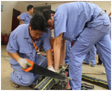 4、手工鋸管:手工鋸管時應(yīng)與相應(yīng)的管子軋頭凳配合使用,管子要在軋頭凳上固定穩(wěn)固后方可鋸管。切割不銹鋼管道時還應(yīng)用酸醋不停的淋澆在切口上,以防止切口打滑。