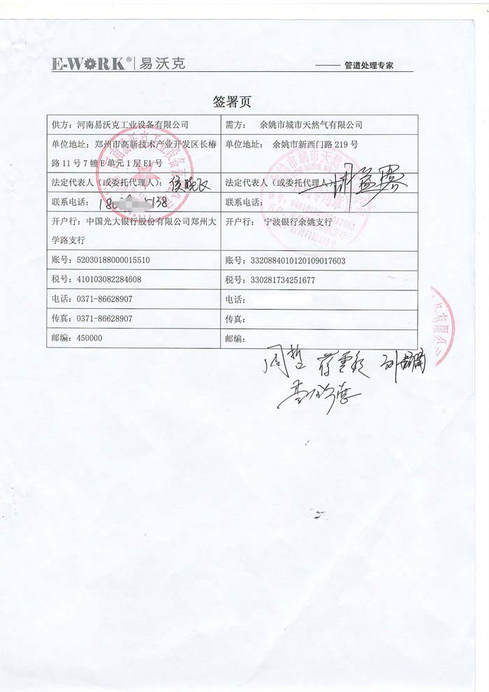 2015年浙江余姚市城市天然氣有限公司合作業(yè)績(jī)