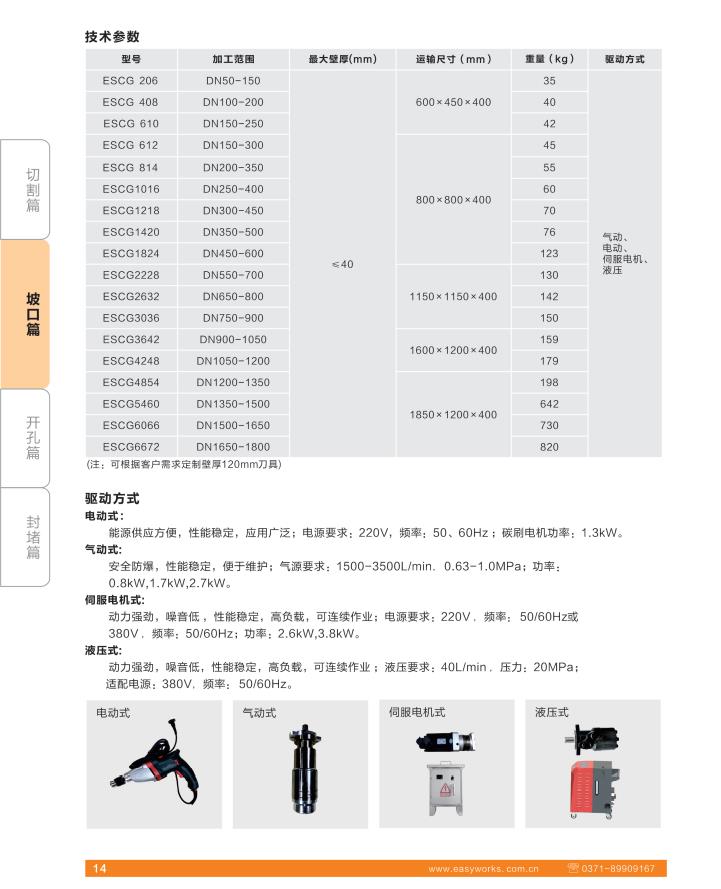 ESCG系列分瓣式管道切割坡口機(jī)設(shè)備是我易沃克公司根據(jù)市場需求,滿足燃?xì)?、石油及石化等工礦企業(yè)用戶需求,自行研制開發(fā)的的切管機(jī),該設(shè)備滿足相關(guān)行業(yè)要求,還符合燃?xì)狻⑹图笆?公司的相關(guān)標(biāo)準(zhǔn)及規(guī)定。外卡分瓣式管道切割坡口機(jī)適用于燃?xì)?、石油?石化等工礦企業(yè)的管道切割、坡口維護(hù)中,作為用戶安裝及搶修 時常用設(shè)備,適合各種作業(yè)環(huán)境:溝槽、易燃易爆,禁止噪音等狹小空間。
